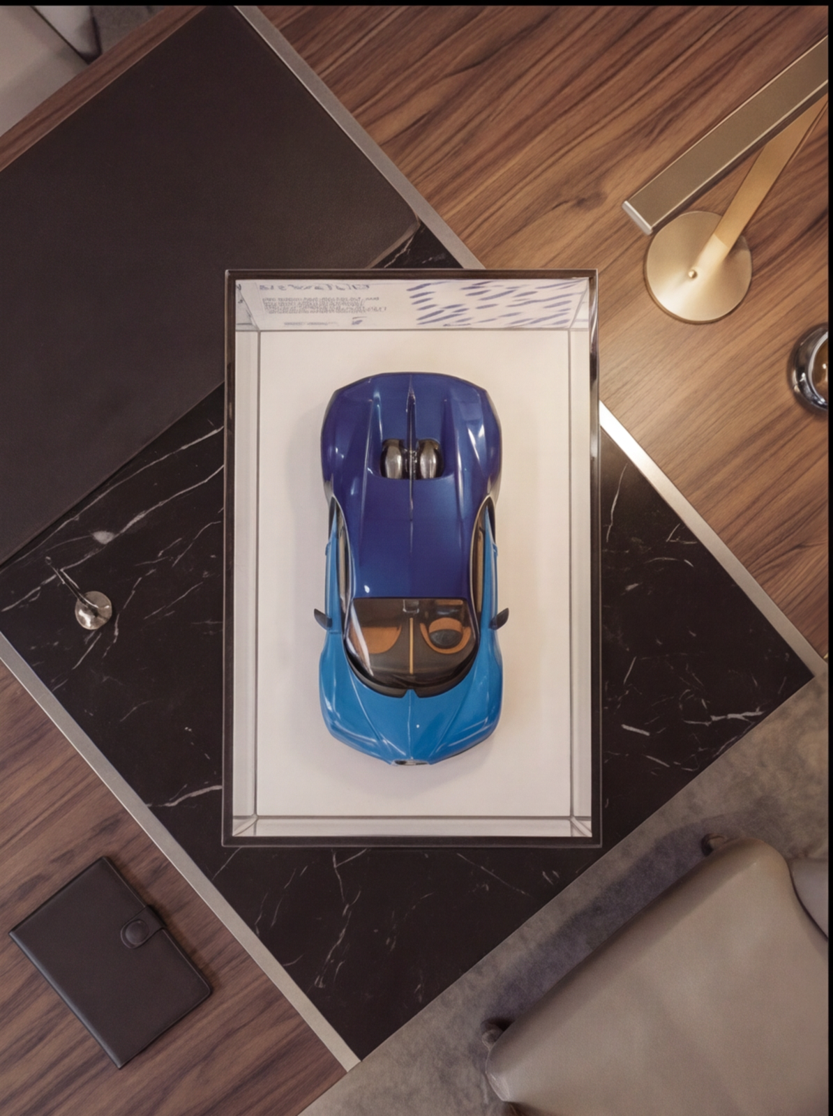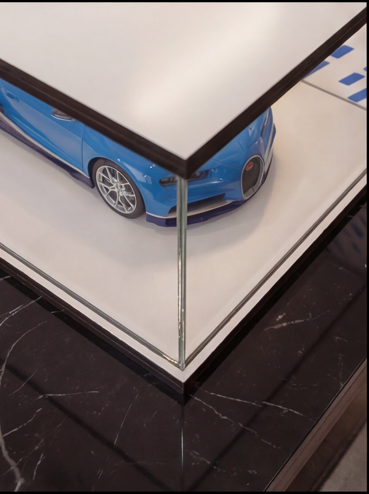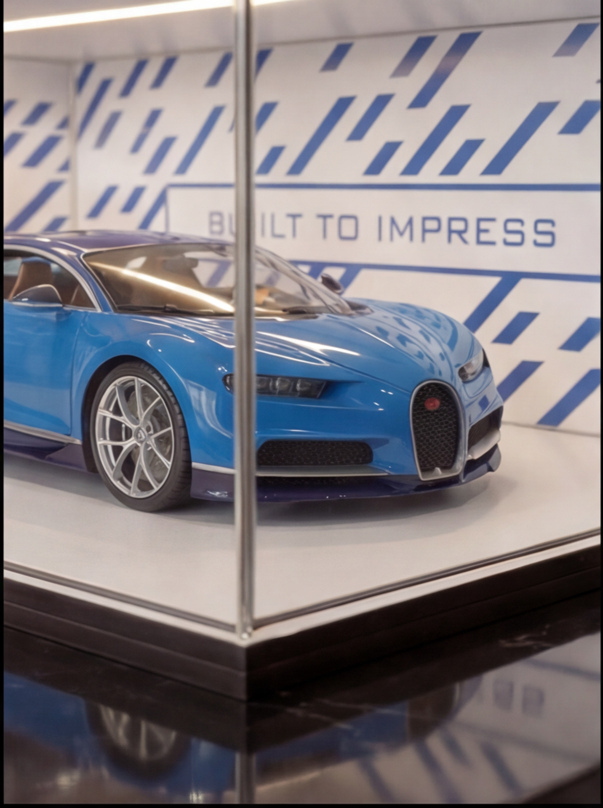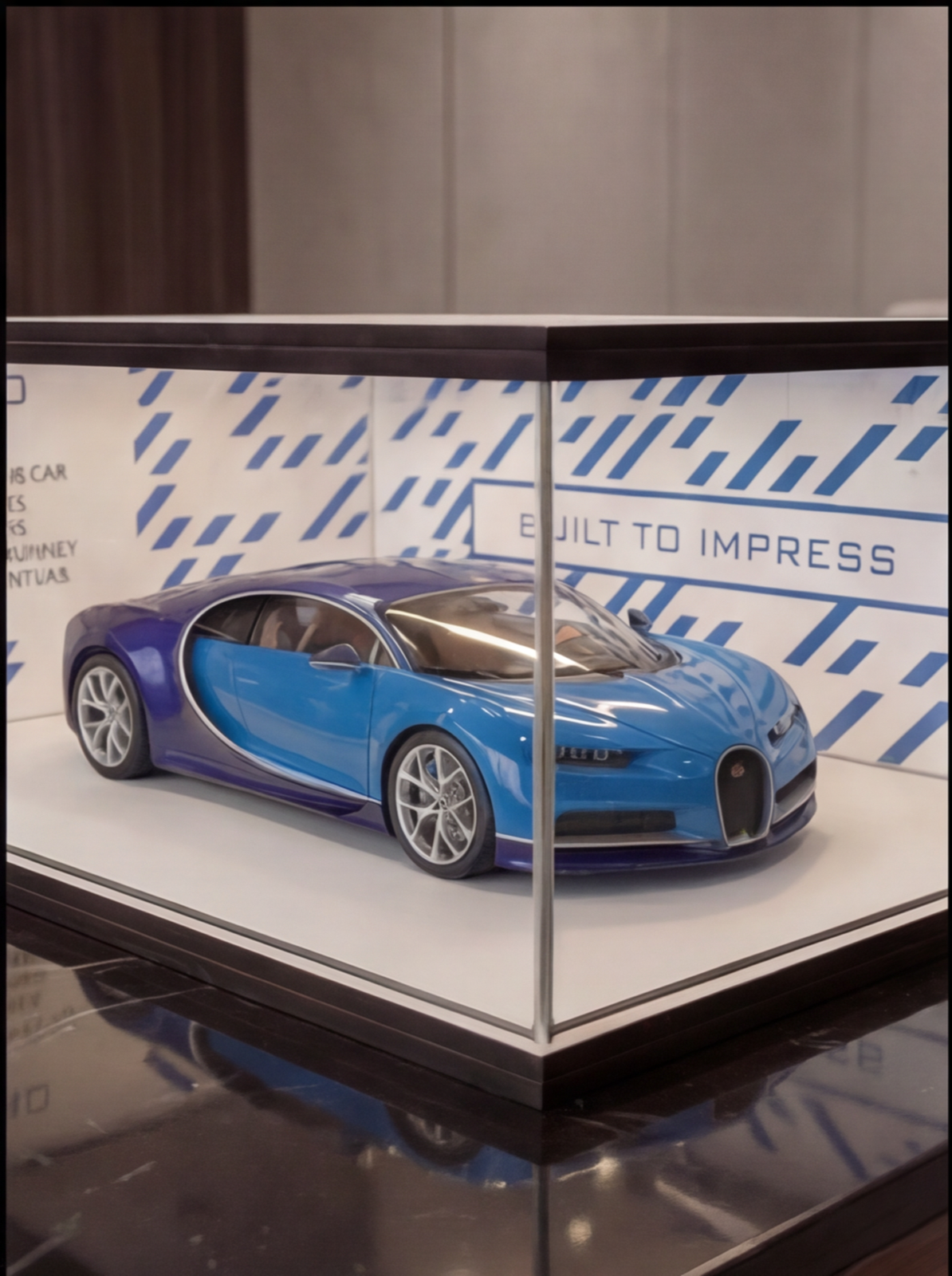 The iconic BUGATTI CHIRON, comes in the bold and sleek Revano Showroom, designed to elevate any desk, shelf, or display corner.