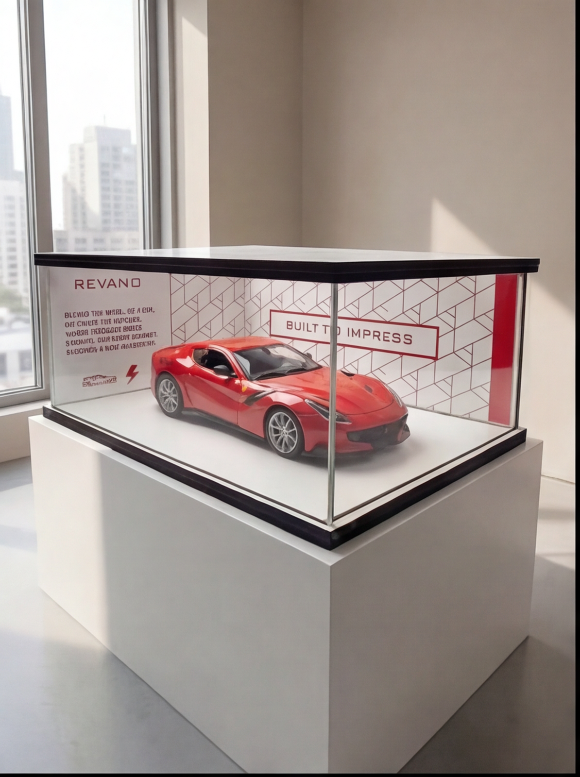 Signature Shadow Showroom Display – Sleek, bold, and designed to highlight your car in style.