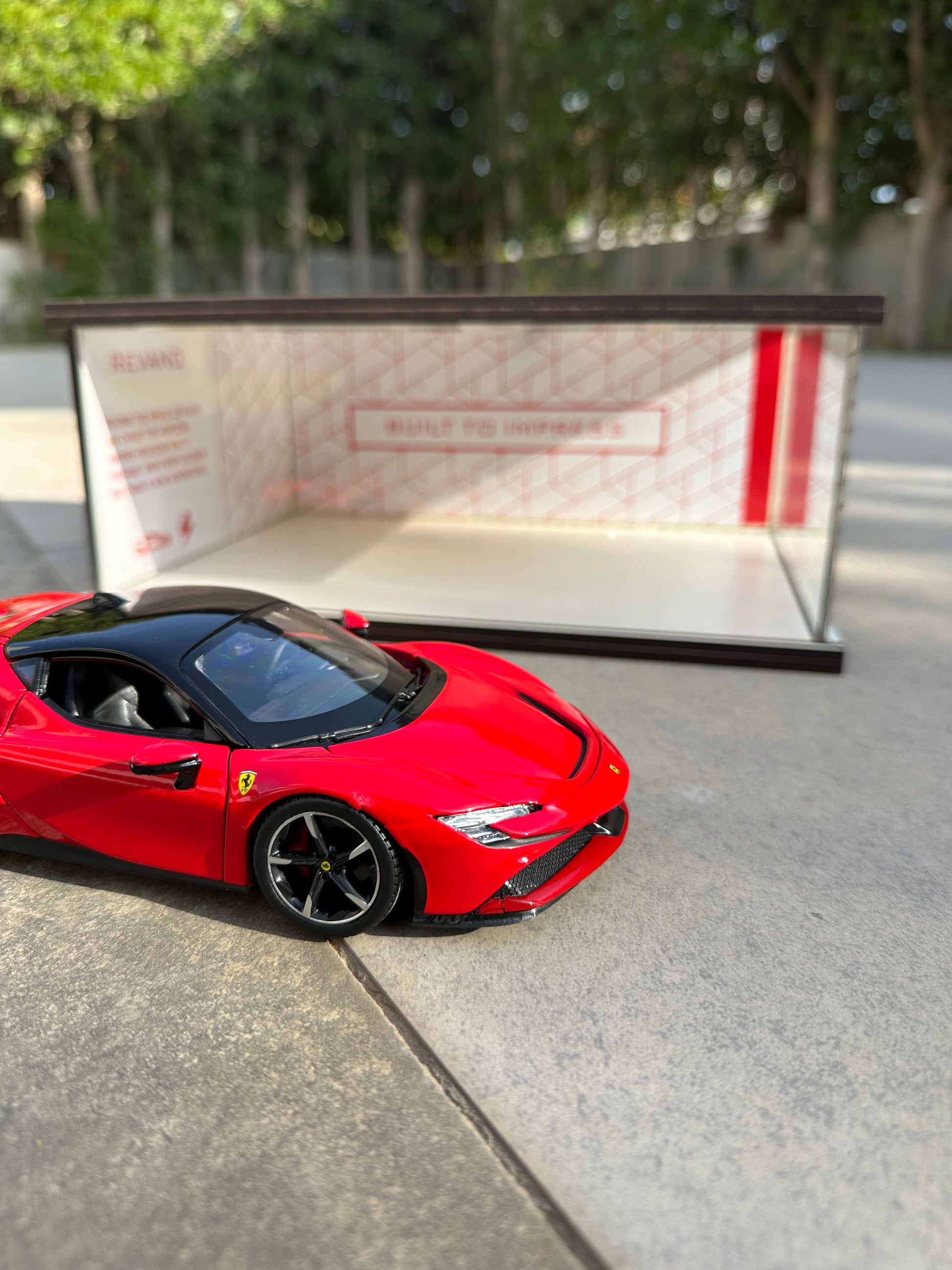 The iconic FERRARI SF90, comes in the bold and sleek Flare Showroom, designed to elevate any desk, shelf, or display corner.