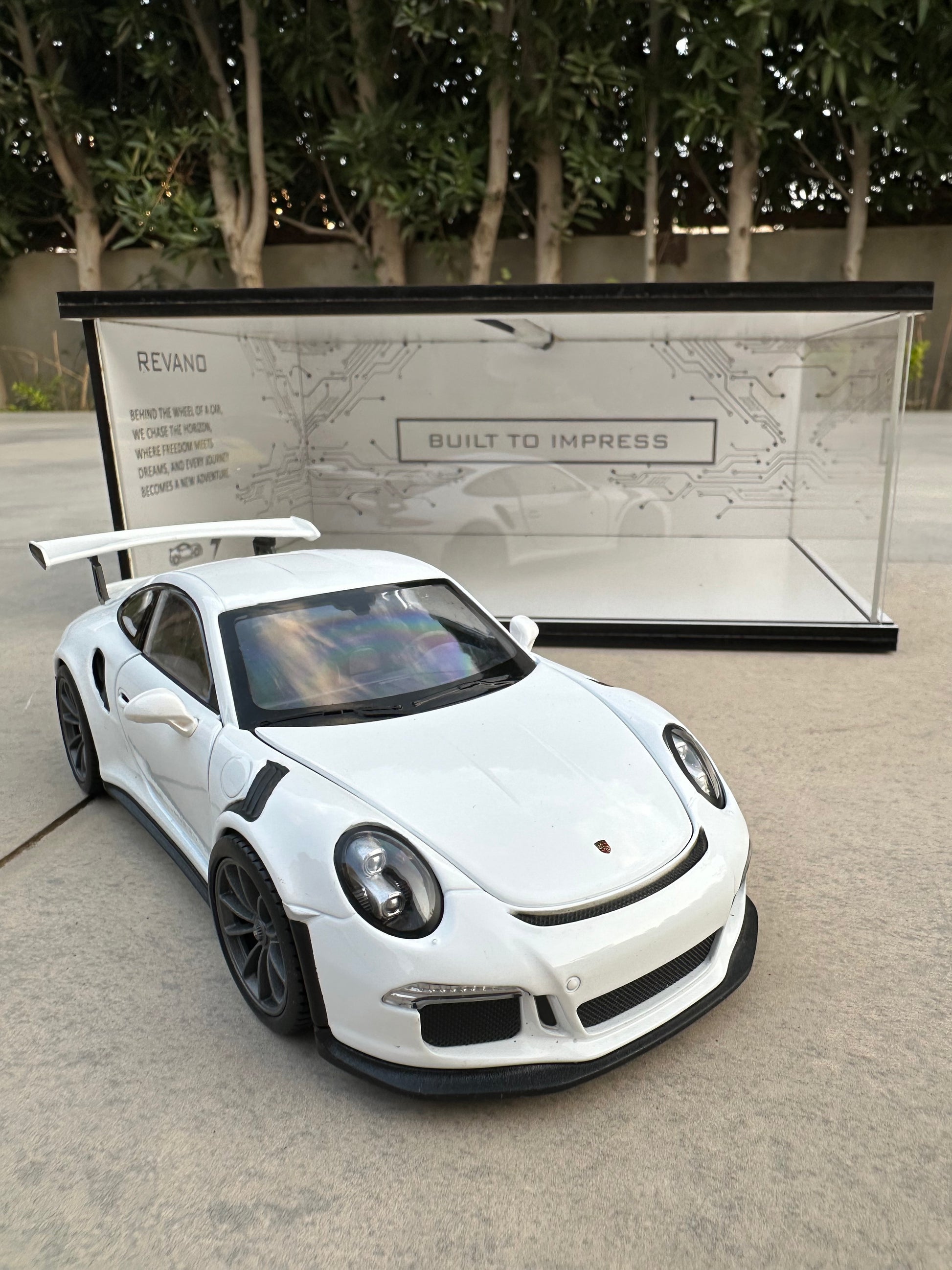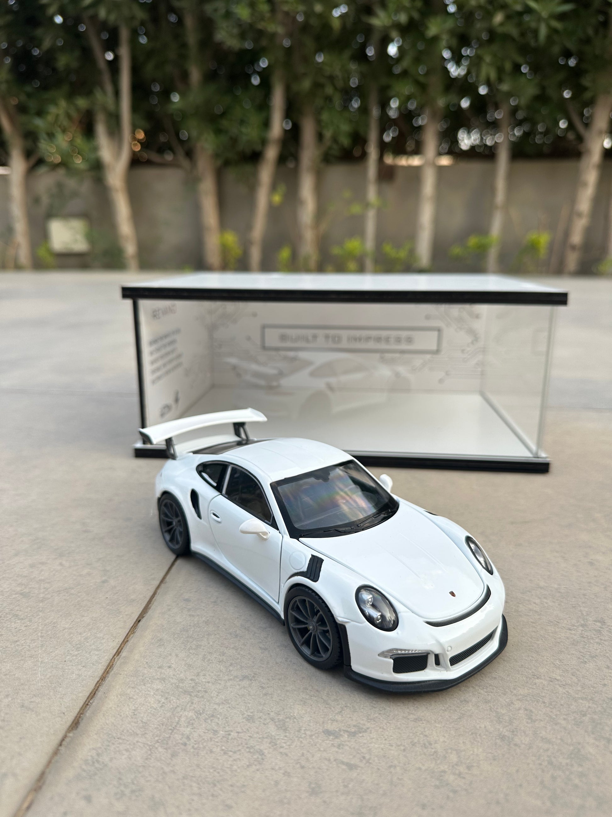 The iconic PORSCHE 911 GT3 RS, comes in the bold and sleek Shadow Showroom, designed to elevate any desk, shelf, or display corner.