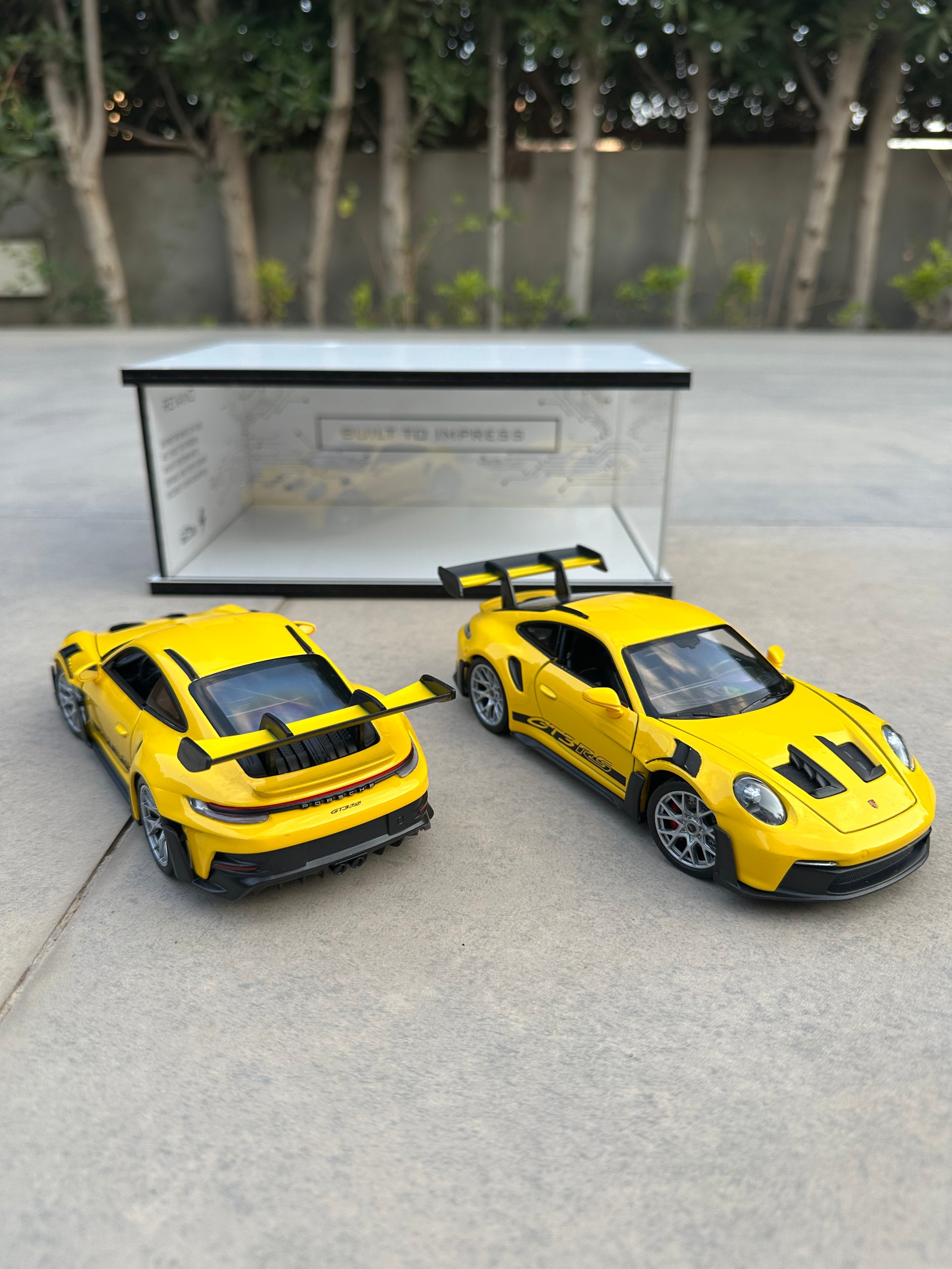 The iconic PORSCHE 911 GT3 RS, comes in the bold and sleek Shadow Showroom, designed to elevate any desk, shelf, or display corner.